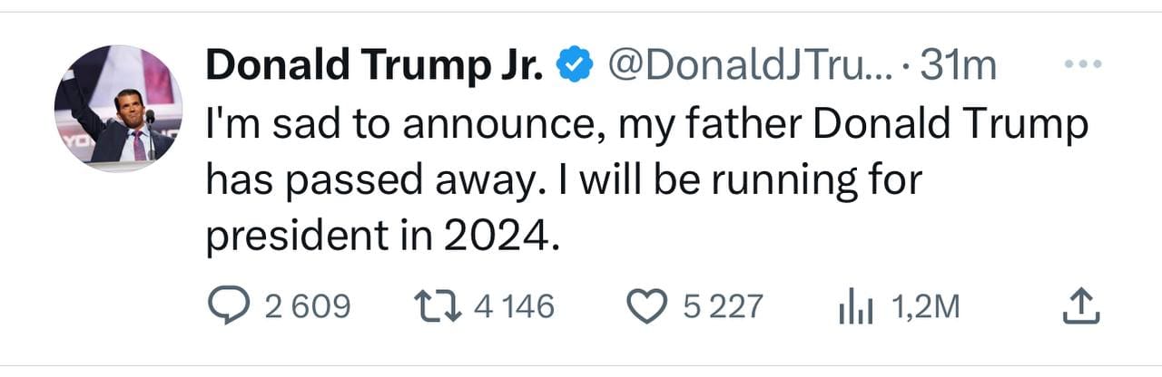 «Трамп скончался…»: сын экс-президента США шокировал пользователей Сети неожиданным сообщением 13 января, 2024