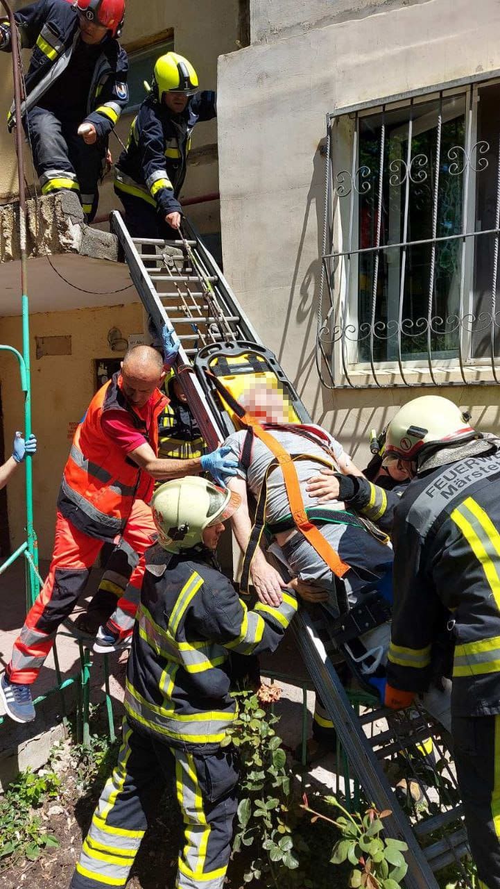 (ФОТО) В Кишиневе мужчина выпал с шестого этажа: спасатели спустили пострадавшего вниз и передали врачам неотложки 13 января, 2024