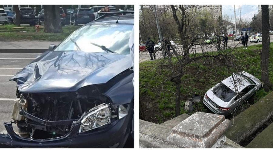 (ФОТО) ДТП в столице: Ford, после столкновения с Toyota, съехал в кювет и чуть не упал в реку Бык 13 января, 2024