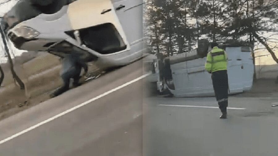 (ВИДЕО) В Бельцах перевернулся микроавтобус: подробности аварии
