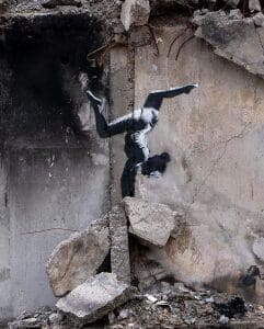 (ФОТО) Анонимный уличный художник Бэнкси отметился стрит-артом на разрушенном здании под Киевом 12 января, 2024