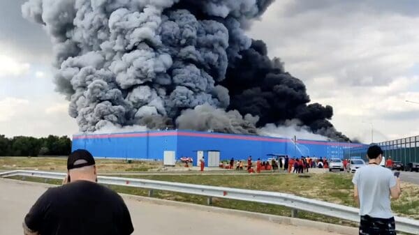 (ВИДЕО) Небо почернело: В Подмосковье горит склад магазина Ozon