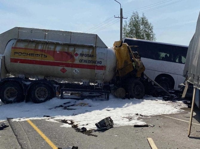 (ФОТО) Чудом избежали пожара: Под Котласом газовоз столкнулся с фурой и автобусом с призывниками 12 января, 2024
