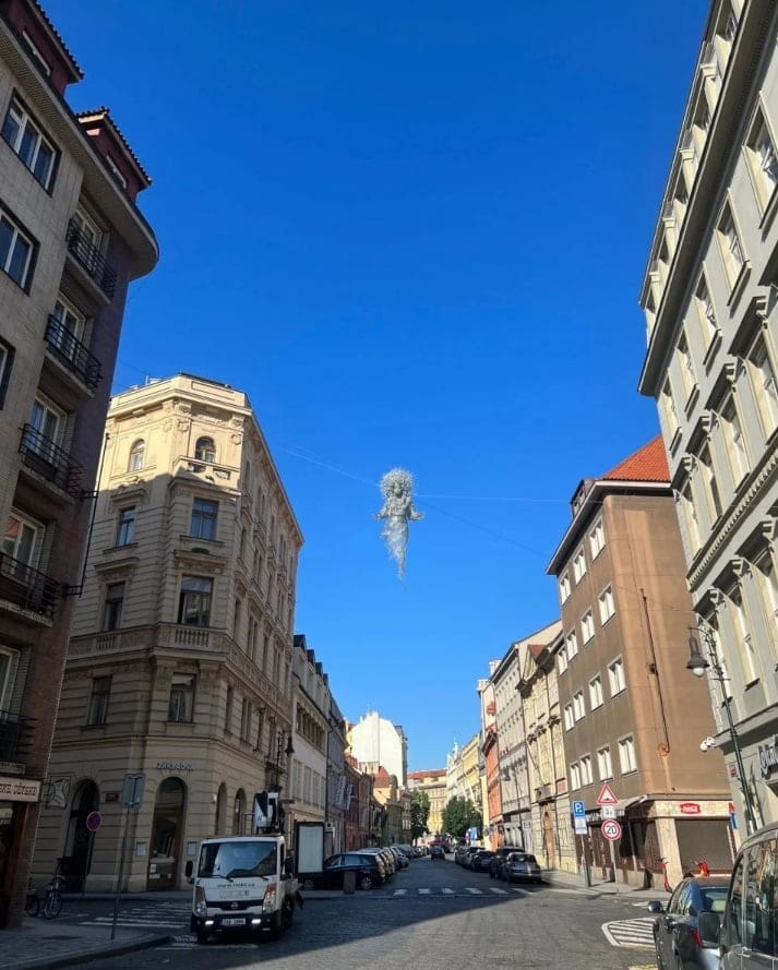(ФОТО) Над Прагой летает украинская мать: В столице Чехии «подвесили» необычную скульптуру 12 января, 2024