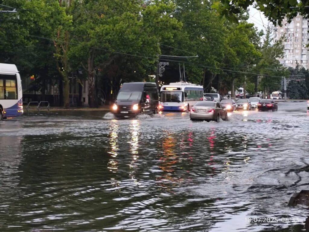 Из-за обильных осадков было нарушено движение троллейбусов и автобусов в Кишинёве. Водители столкнулись с трудностями на улицах Иона Крянгэ, Албишоара и Иона Инкулец.