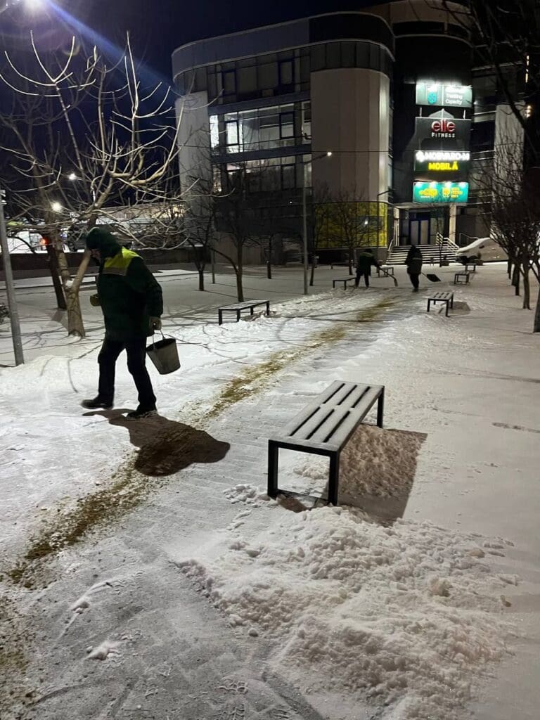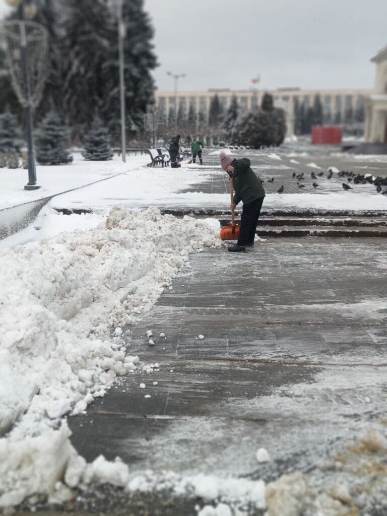 Мэрия Кишинева сообщила, что профильные муниципальные службы продолжают работы по уборке снега и борьбе с гололедом на территории столицы.