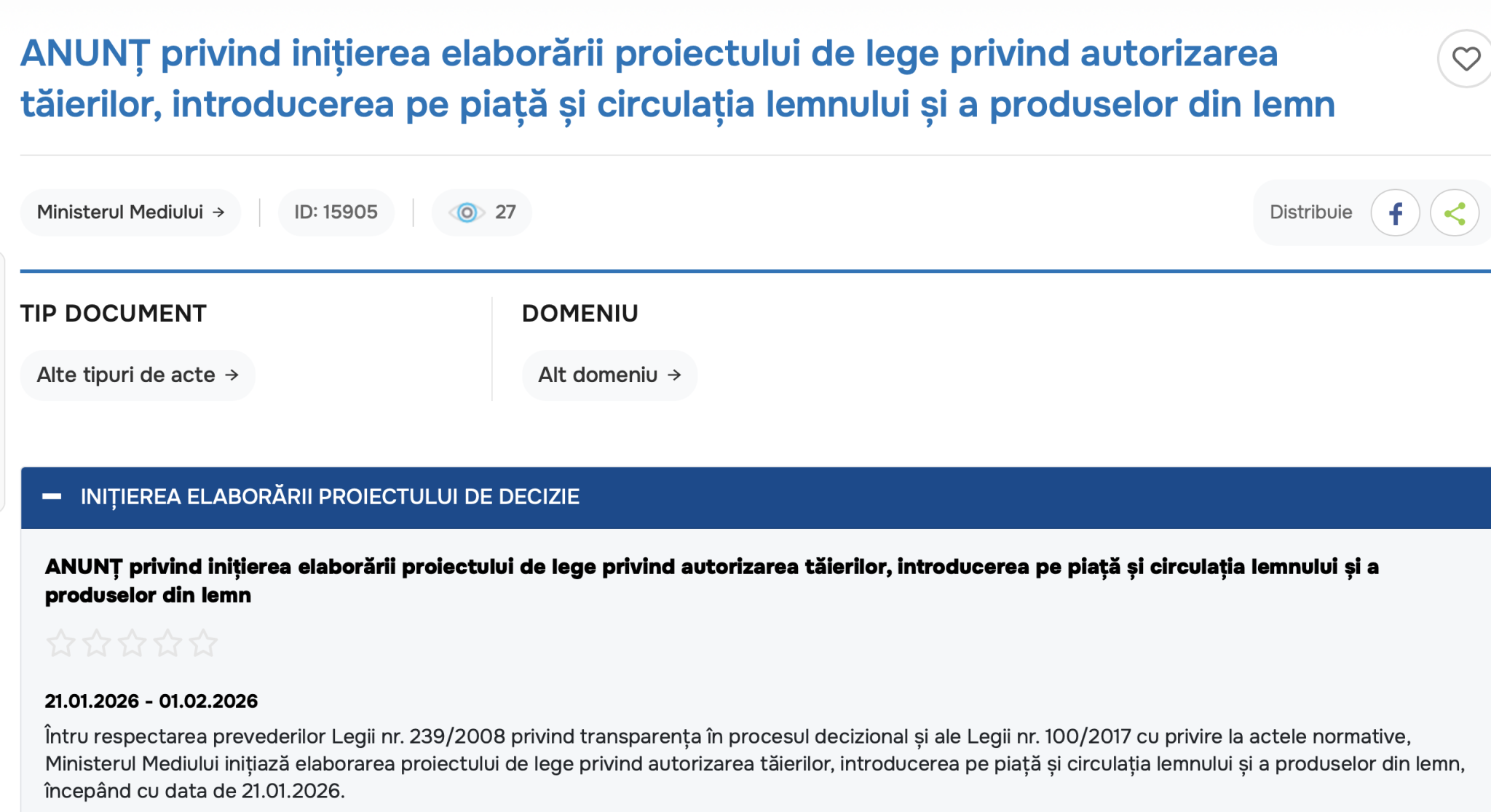 Министерство окружающей среды разрабатывает отдельный закон, регулирующий вырубку деревьев. Новые положения установят правила перемещения и продажи древесины.