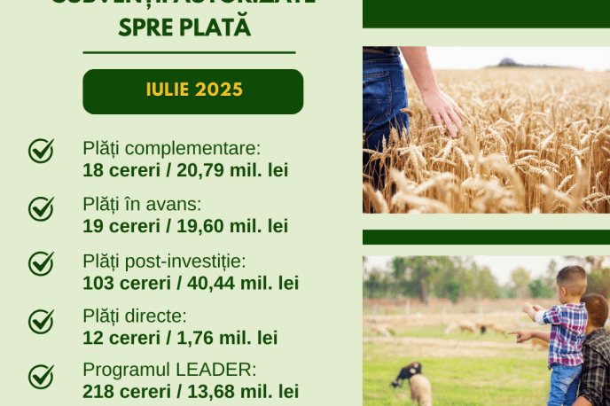 В июле 2025 года государство выплатило более 96 миллионов леев субсидий аграриям и другим бенефициарам из сельской местности. Деньги направлены на поддержку сельхозпроизводства, страхование, орошение, модернизацию и развитие инфраструктуры.