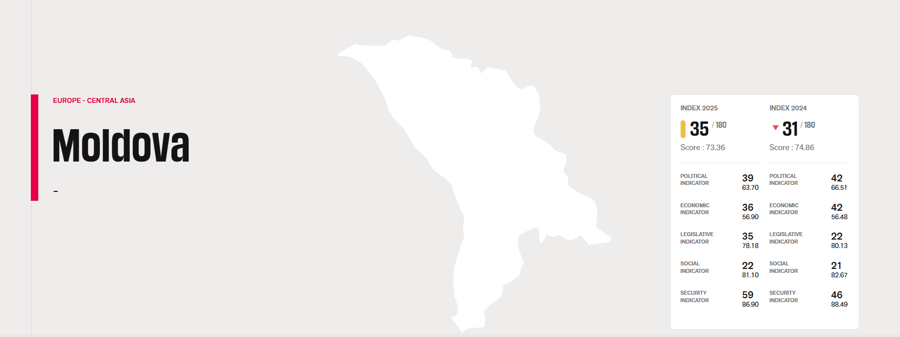 Республика Молдова заняла 35-е место из 180 в Индексе свободы прессы за 2025 год, опубликованном организацией «Репортеры без границ» (RSF).