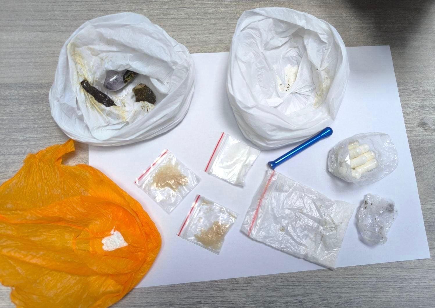 В ходе проверки среди личных вещей пассажира были обнаружены несколько пакетиков с различными видами наркотиков и психотропных веществ, предположительно марихуаной, кокаином, MDMA, а также капсулы с веществами неизвестного происхождения. Общий вес составил около 38,42 грамма. Кроме того, был найден синий прибор для употребления этих веществ.
