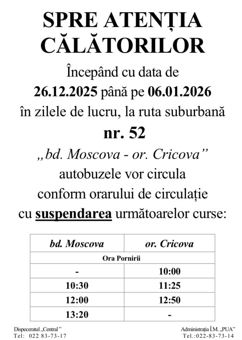 Для получения дополнительной информации пассажиры могут позвонить в диспетчерскую Городского автобусного парка по номеру телефона 022 837 317.