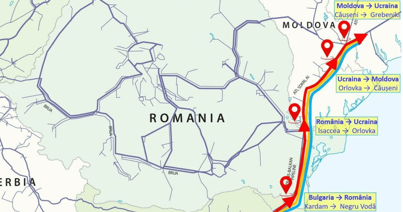 Топливо проходит транзитом через территории Болгарии, Румынии и Молдовы. Конечной точкой логистической цепи выступает Украина, где газ в том числе закачивается в подземные хранилища.