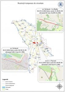 - 18-19 декабря, с 21:30 до 1:30 – участок дороги Кишинев – Унгены – граница с Румынией, между выездом из города Страшены и города Буковэ;