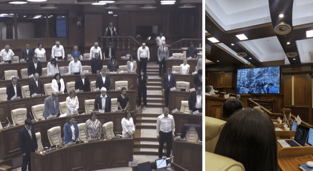 11 июля заседание парламента Молдовы началось с минуты молчания в память о погибших в результате обстрела Киева 8 июля. С инициативой выступил спикер парламента Игорь Гросу.