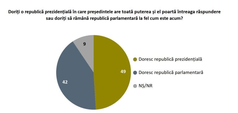 Почти половина граждан хотят, чтобы Молдова стала президентской республикой, в которой глава государства обладает всей властью и несет полную ответственность за каждое решение. Об этом свидетельствуют результаты июльского социально-политического опроса, проведенного компанией IMAS по заказу Independent News.