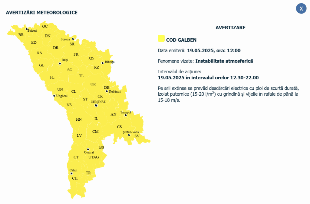 Государственная гидрометеорологическая служба выпустила предупреждение о неблагоприятных погодных условиях. Предупреждение действует 19 мая, с 12:30 до 22:00, на всей территории страны.