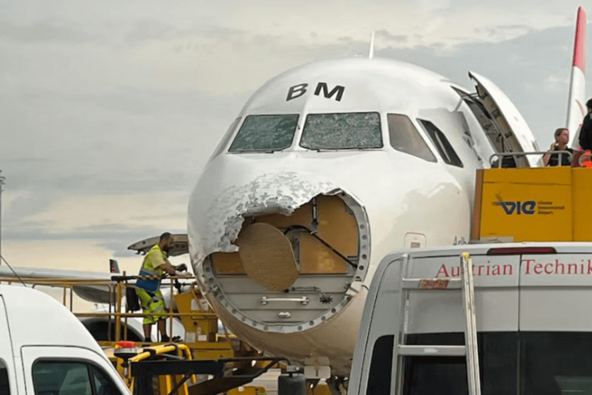 Во время перелета из аэропорта Пальма-де-Майорка в Вену пассажирский самолет попал в грозу с градом и частично лишился носовой части. Об этом сообщает ABC News.