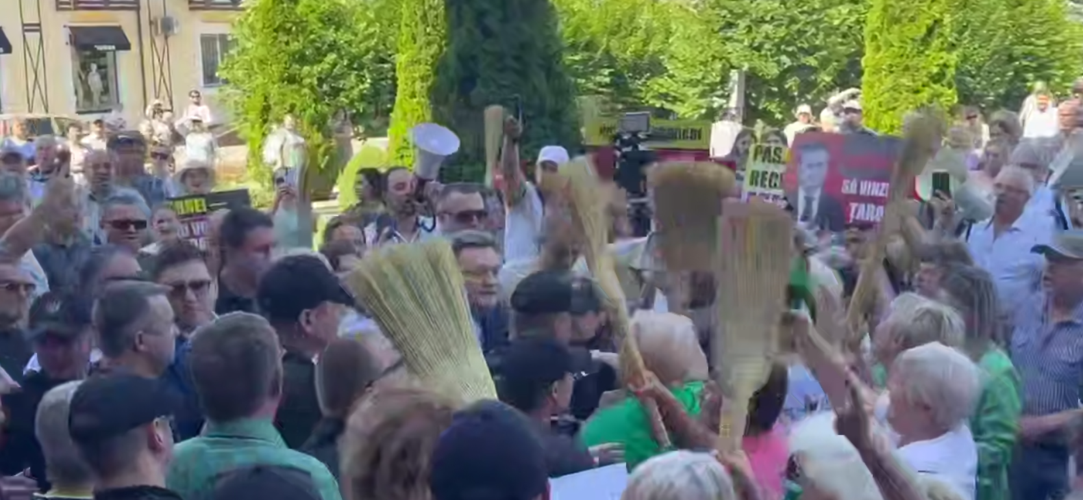 Вскоре после этого к зданию прибыл и сам Дорин Речан. Премьер-министра встретили с метлами и плакатами, граждане скандировали: «Долой Речана!».