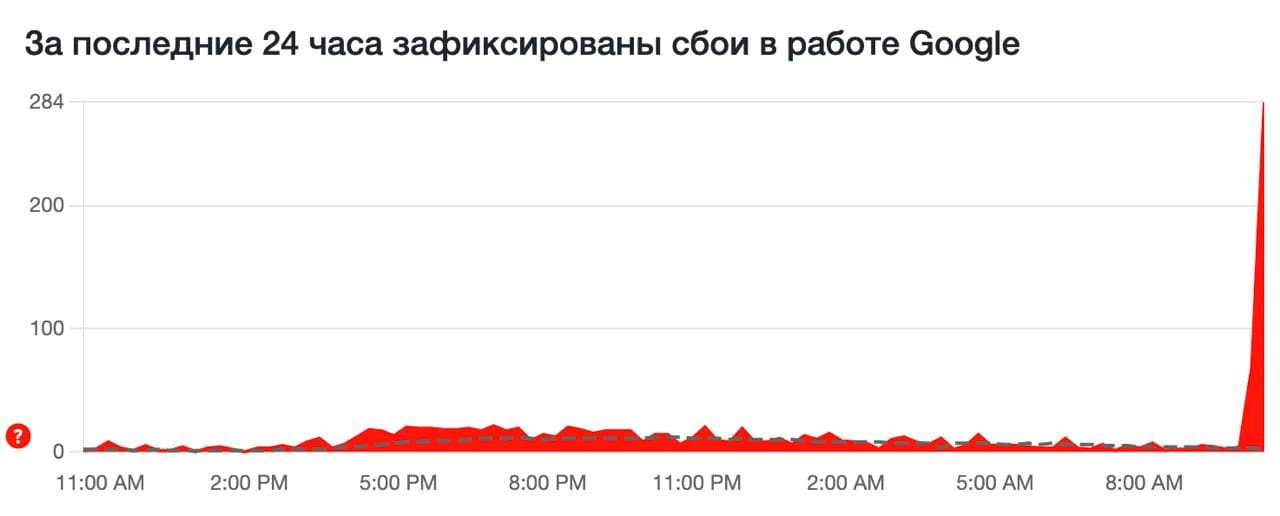 Сегодня, в четверг 4 сентября, пользователи из разных стран сообщили о проблемах с доступом к сервисам Google, включая видеохостинг YouTube, почту Gmail, браузер Chrome и другие платформы компании. Об этом свидетельствуют данные сервиса Downdetector.
