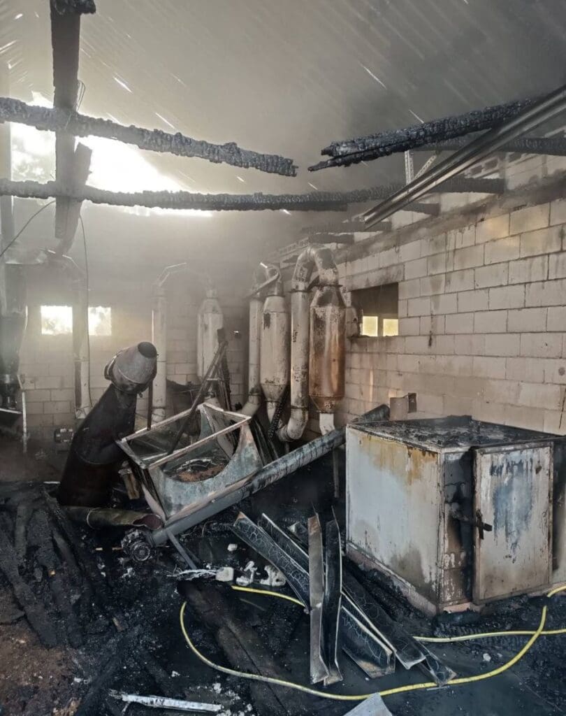Огнём уничтожена часть оборудования, около 20% сырья, хранившегося в соседнем помещении, и примерно 20% кровли склада площадью 150 квадратных метров.