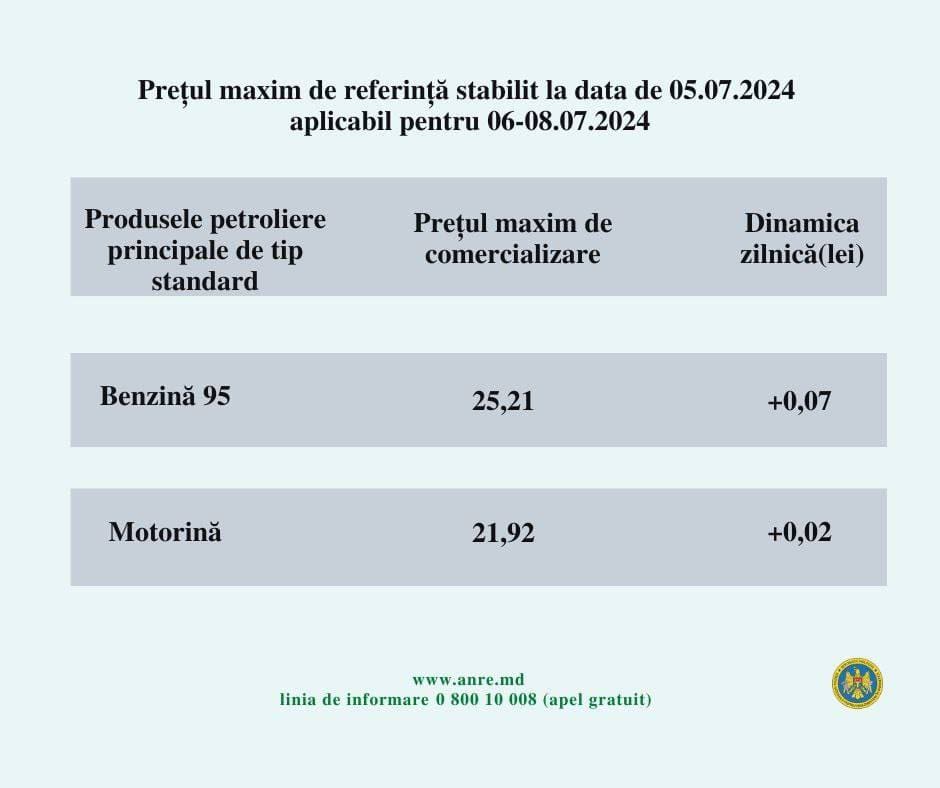 Бензин с октановым числом 95 будет стоить 25, 21 лей, что на 7 банов больше прежнего. Дизельное топливо подорожало на 2 бана и его цена составит 21,92 лей.