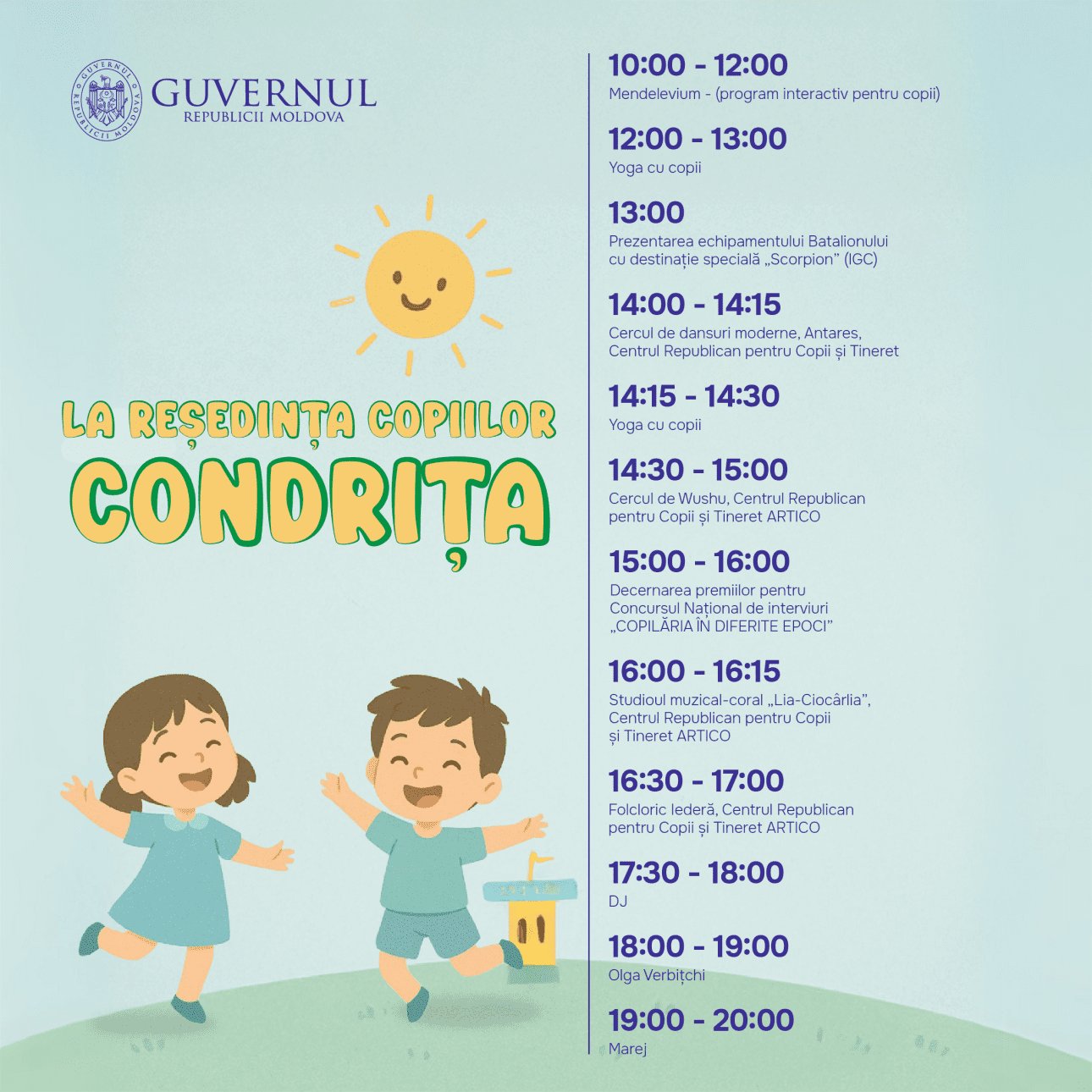 Сегодня, 1 июня, в Международный день защиты детей, президент Молдовы Майя Санду поздравила юных граждан страны, пожелав им счастливого детства, наполненного заботой и теплом семьи. Глава государства также пригласила детей и их родителей на праздник, организованный правительством в Кондрице.