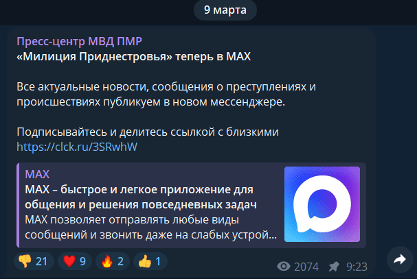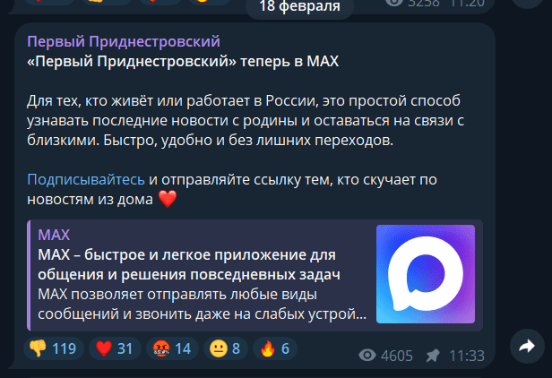 Приднестровские медиа переходят в российский мессенджер MAX для удержания аудитории