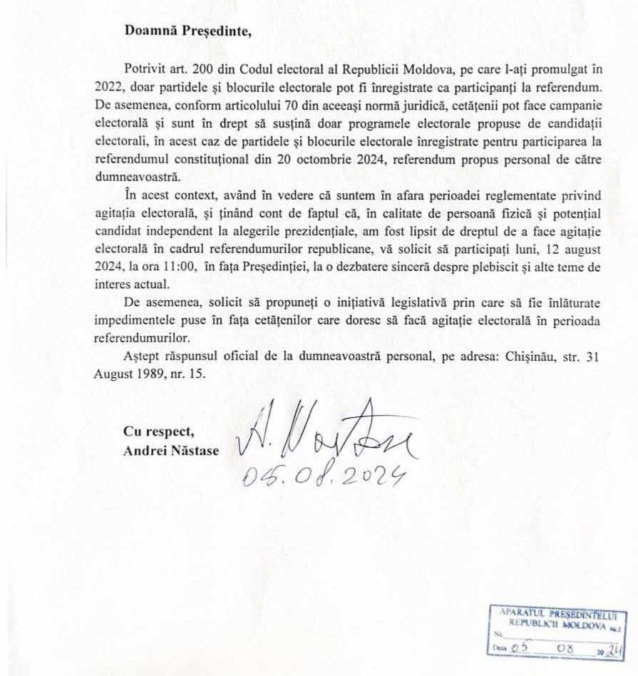 По итогу Андрей Нэстасе зарегистрировал в администрации президента письменный запрос с указанием даты и времени встречи с президентом.