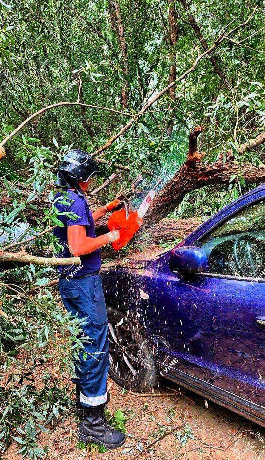 (ФОТО) Пронесло: подросток успел выскочить из машины за секунду до того, как на нее рухнуло дерево.