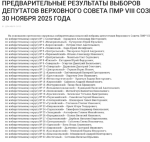 Так называемая Центральная избирательная комиссия в Тирасполе объявила результаты прошедших на левом берегу Днестра псевдовыборов. При этом были опубликованы только имена кандидатов прошедших в т.н. Верховный совет, без каких-либо данных о том, кто из них и сколько голосов набрал.