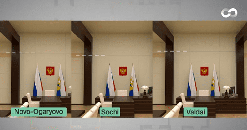 Радио «Свобода» разоблачило одну из систематических манипуляций в России. У Кремля есть три почти точные копии президентского кабинета, расположенного в Ново-Огареве (под Москвой), в двух других местах: Бочаров Ручей (Сочи) на берегу Черного моря, и Валдай, на полпути между Москвой и Санкт-Петербургом.