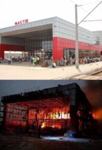Одним из наиболее пострадавших населенных пунктов стал Фастов в Киевской области, где железнодорожный вокзал был разрушен, а три человека получили ранения, сообщают украинские власти. Кадры с места событий демонстрируют значительно поврежденное здание после удара.