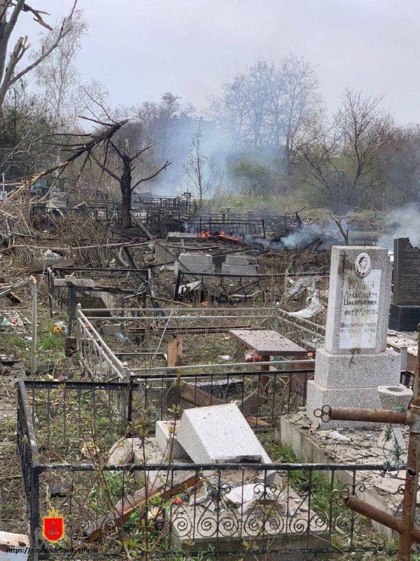 Во время ракетного обстрела Одессы, кроме 16-этажного жилого дома, пострадало одно из городских кладбищ. Об этом сообщает Telegram-канал Одесского горсовета. Там уточнили, что в результате обстрела разрушено больше 1000 кв. м погребального комплекса. Жертв и пострадавших нет.