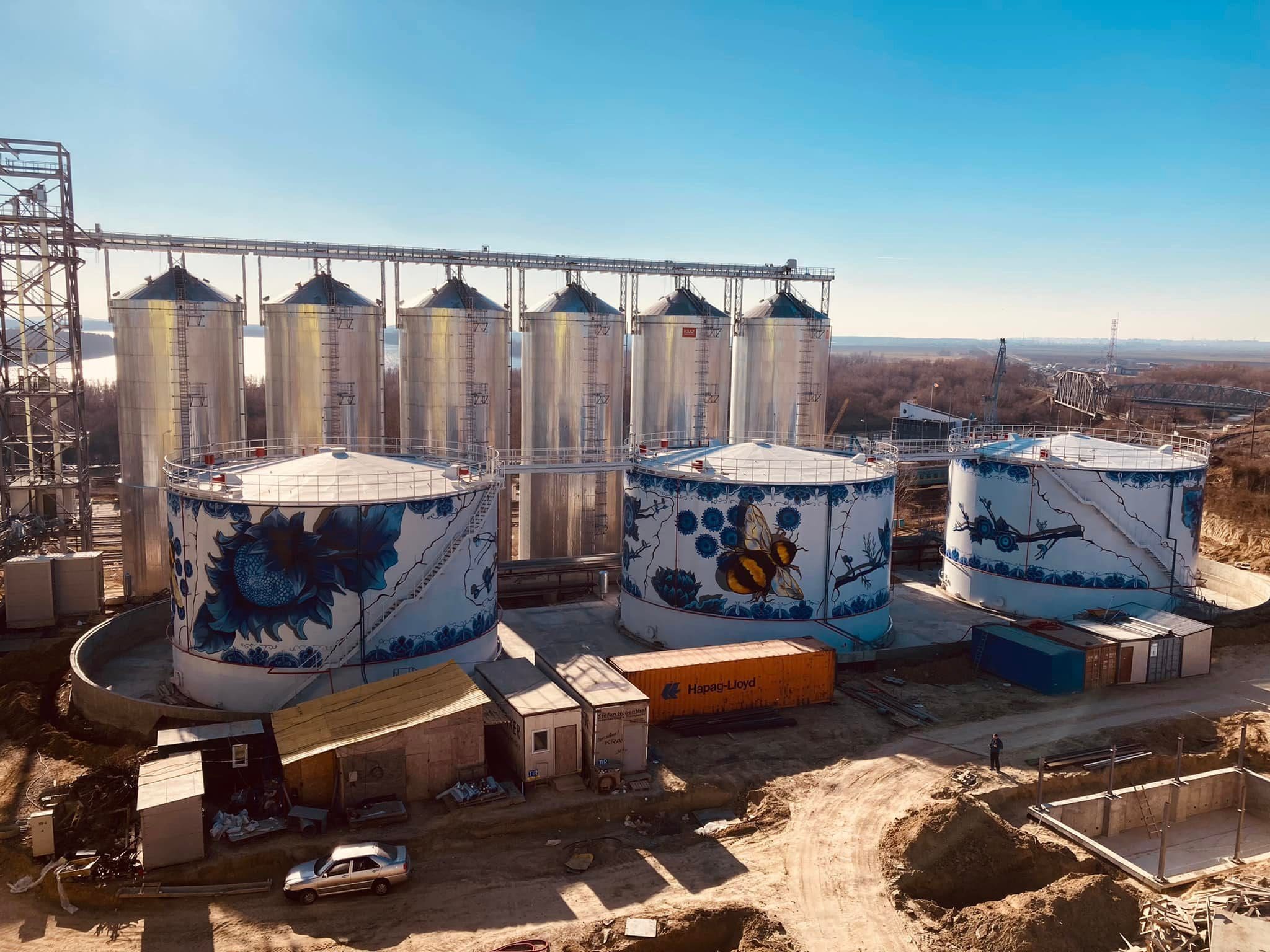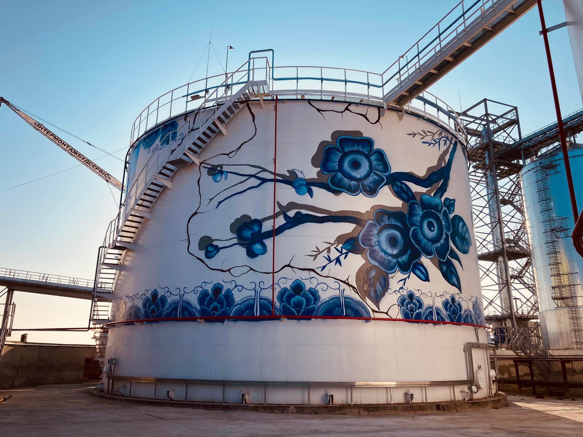 Стрит-арт художник Дмитрий Потапов расписал цистерны с подсолнечным маслом на одном из предприятий на юге страны.