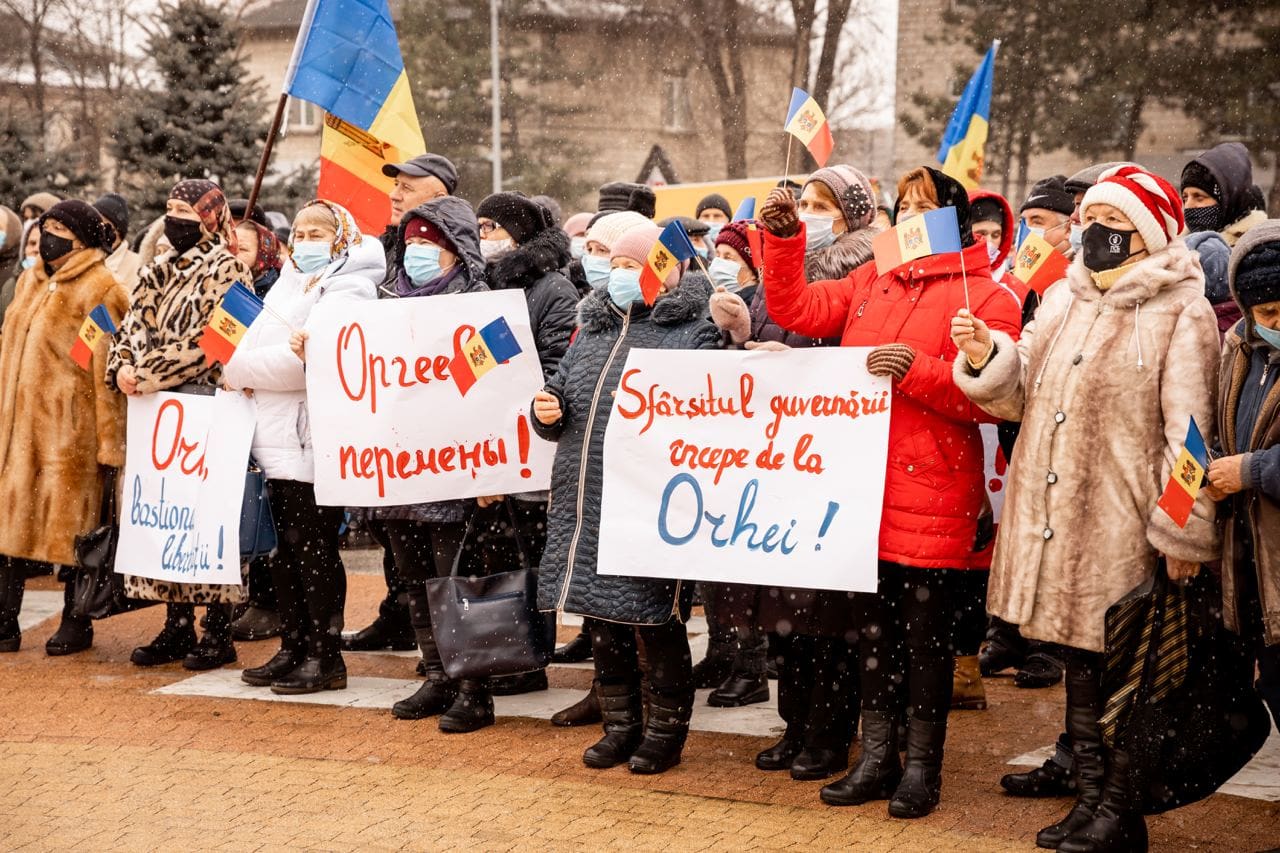Люди требовали отставки Правительства, которое несколько дней назад аннулировало решение Оргеевского районного совета, разрешившего школьникам посещать учебные заведения в обычном режиме.