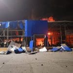 В городе загорелся торговый центр и склад готовой продукции. Об этом сообщил спикер Одесской военной администрации Сергей Братчук. Ракеты угодили в один из самых известных торговых центров города — «Ривьера». СМИ писали, что здесь находились склады с иностранным вооружением и боеприпасами, однако мэр Одессы информацию опроверг.