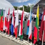 Также, стоит отметить композицию из флагов, которая символизирует единство стран.