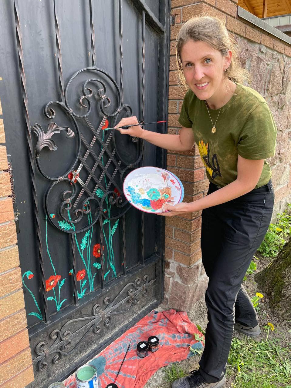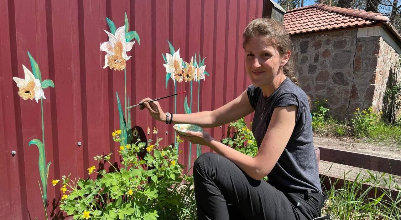 Художница Иванка Селковская приехала в Украину впервые. Видя, как сильно пострадал город после обстрела, она предложила простую идею, которая превращает ужасные следы оккупации, в символ цветущего будущего Украины.