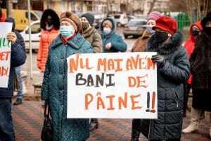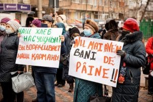 Участники акции протеста в основном пенсионного возраста. Они заявляли, что действующая власть хоть и повысила минимальную пенсию до 2000 лей в месяц, этого не хватает даже на то, чтобы покрыть счета за коммунальные услуги, а если брать в расчёт рост цен на продукты питания, то людям просто не выжить.