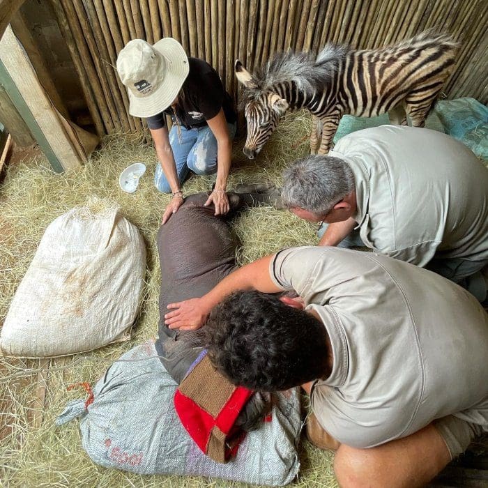 Детеныша носорога спасли сразу после рождения и назвали Дейзи. Малышка с трудом могла ходить и сдружилась с воспитанницей зооцентра – зеброй Моджаджи.