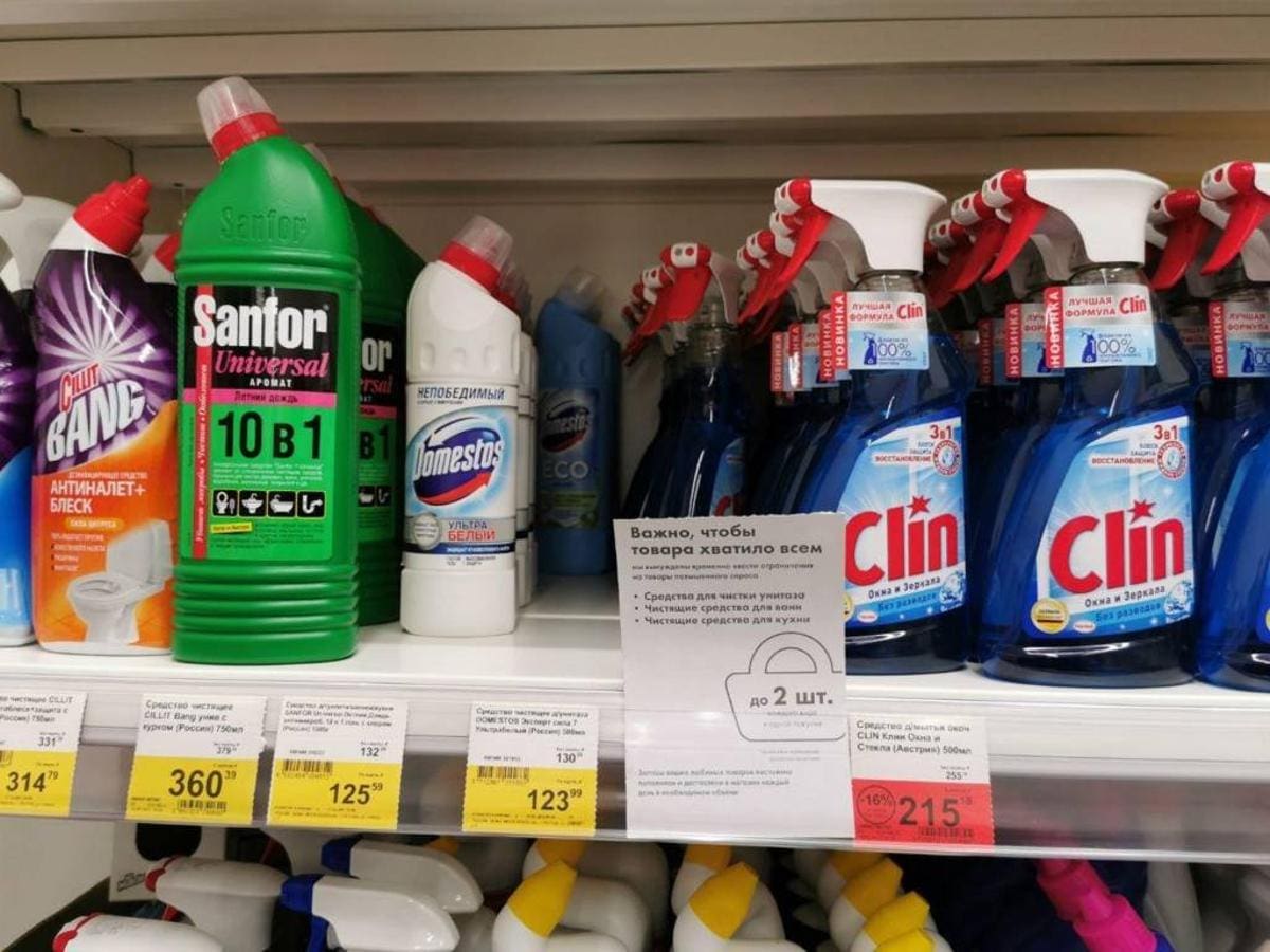 В Подмосковье, в одной из сетей разрешено продавать 2 штуки чистящих средств в одни руки, а лапшу быстрого приготовления и мясные консервы – до 10 штук.