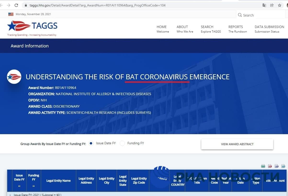 При этом подрядчик Пентагона по этой программе изучал и коронавирусы у летучих мышей в Китае незадолго до начала пандемии – по 2019 год включительно, выяснили журналисты РИА Новости, изучив документы американских ведомств.