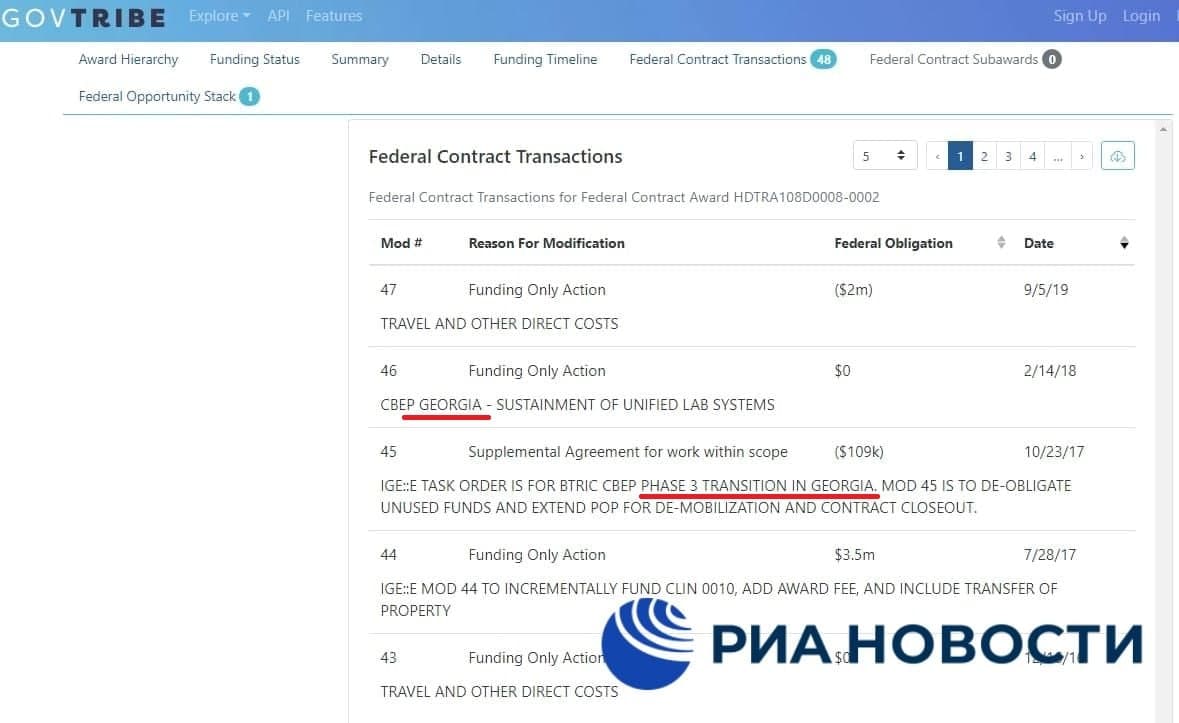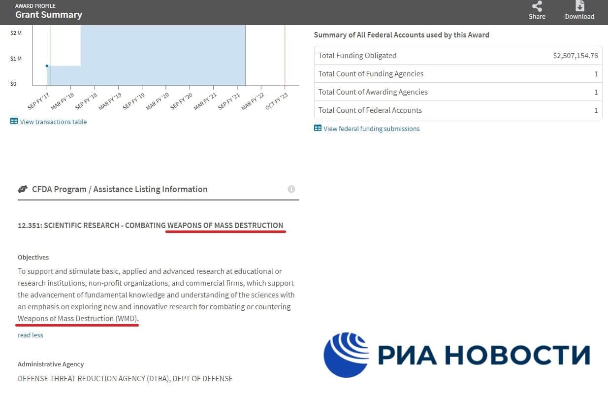 Общая сумма финансирования этих исследований правительства США, согласно документам, составляет около $10,2 млн: из них $6,5 млн – в Грузии, Армении, Азербайджане, Турции и Иордании, а $3,7 млн – в Китае.