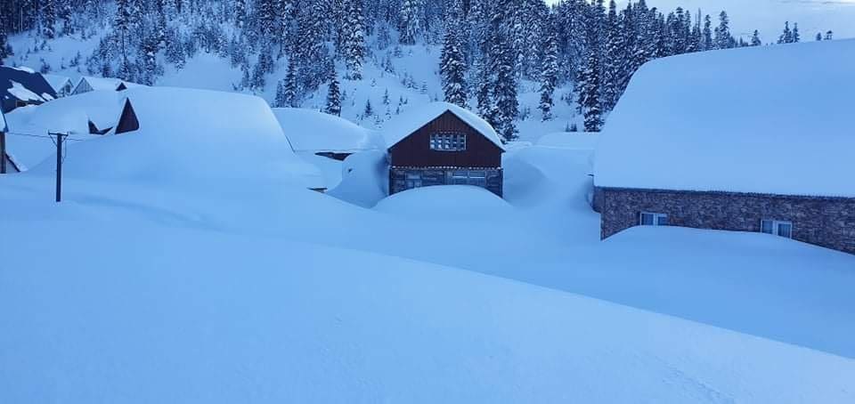 На село Бахмаро обрушились снегопады в виде четырехметровых сугробов. Местные жители грузинского села Бахмаро делятся в соцсетях фотографиями сугробов.