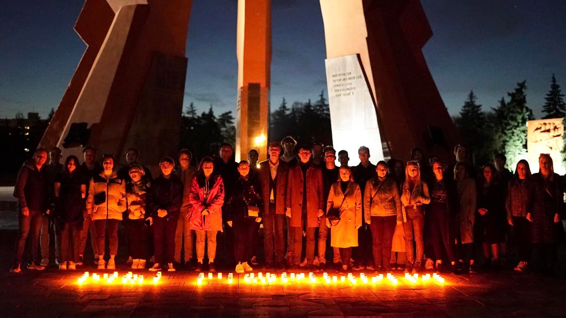 Активисты “Молодой гвардии” зажгли свечи и выложили ими надпись “Мы помним” на мемориале Вечность. В ходе акции молодежь почтила минутой молчания память воинов, погибших на полях сражений ВОВ.