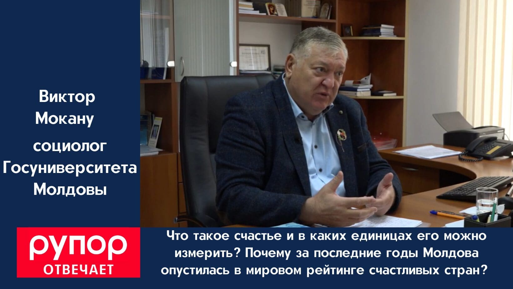 Об этом rupor.md поговорил с Виктором Мокану, социологом Государственного университета Молдовы. Мы обсудили, что влияет на уровень счастья, какую роль в этом играют государственные структуры, а что зависит только от самого человека?