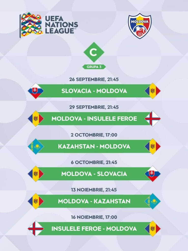 Сборная Молдовы по футболу узнала точное расписание матчей в предстоящем розыгрыше Лиги Наций УЕФА сезона 2026/2027. Национальная команда выступит в группе C3, где ее соперниками станут сборные Словакии, Казахстана и Фарерских островов.