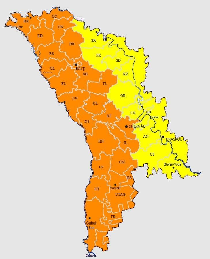 Метеорологи объявили штормовое предупреждение в Молдове. Часть страны будет под влиянием «оранжевого кода», другая – под «желтым». Предупреждение вступает в силу в субботу в 03:00 утра и будет действовать до 06:00 воскресенья.