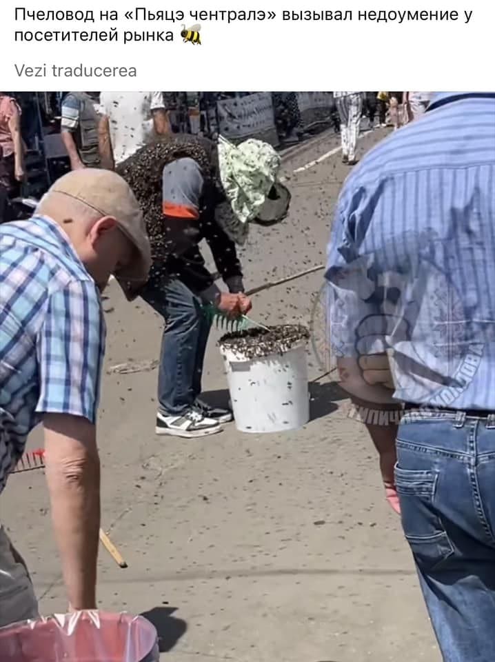 В социальных сетях появилось видео роя пчел, который атаковал Piaţa Centrală. На кадрах также был человек в спецодежде. Им оказался Константин Настасиу, пчеловод из Ниспоренского района.