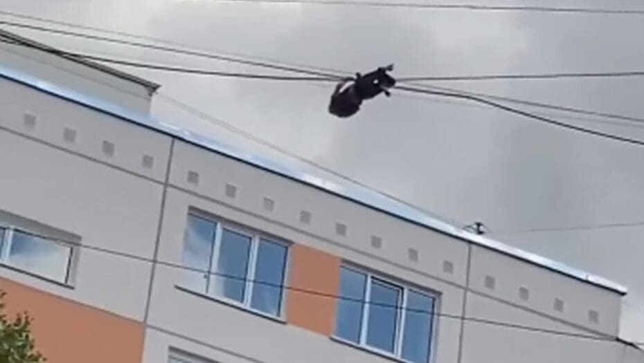 (ВИДЕО) Рискнул жизнью за 500 рублей: Петербуржец совершил вылазку по проводам
